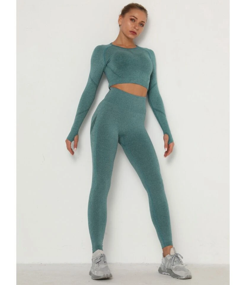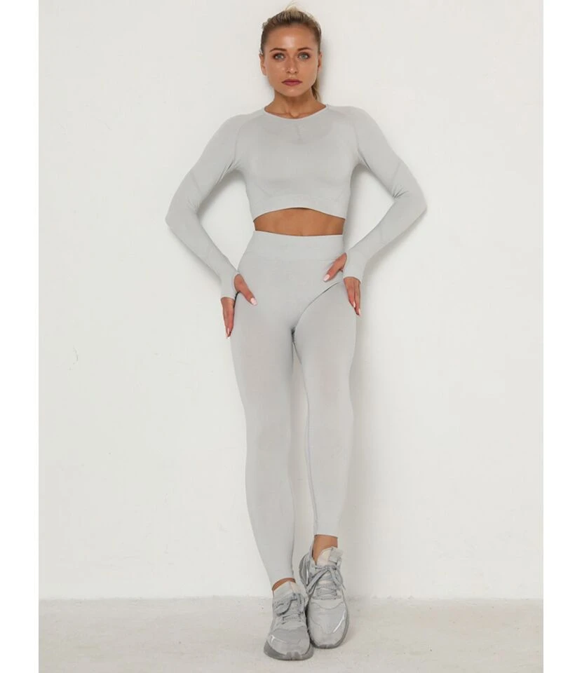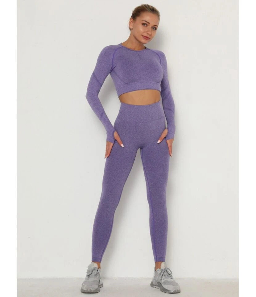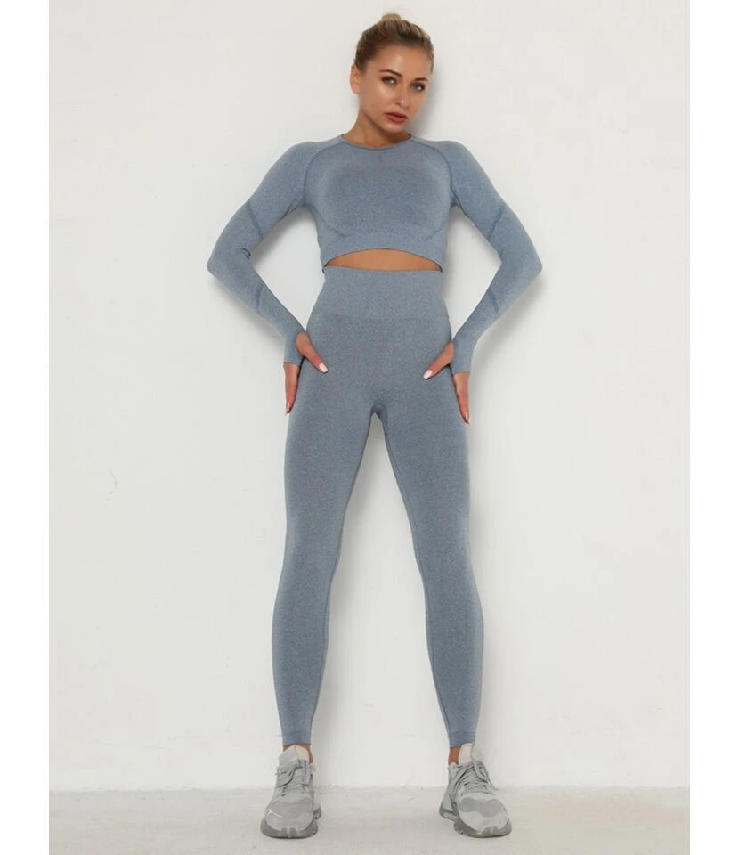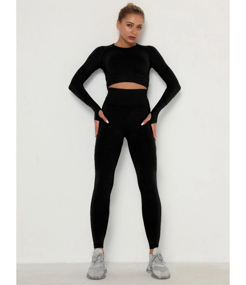 2-piece Contrast Crop Top Match Leggings Workout Set Cheap Wholesale Womens Clothing