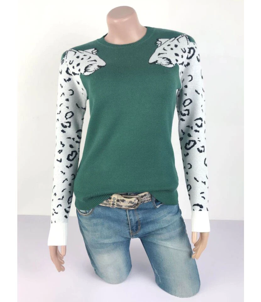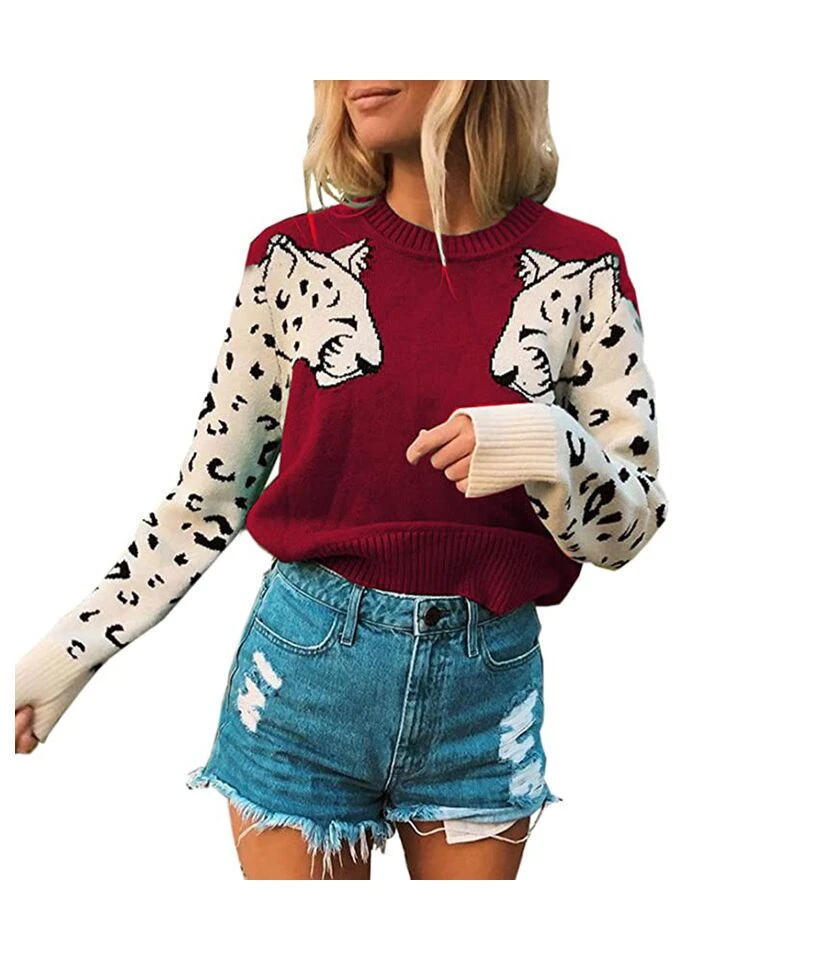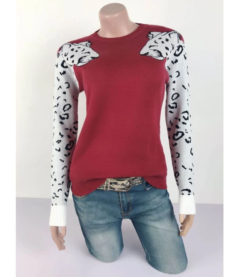 Casual Color-Blocking Print Tops Long Sleeve Loose Wholesale Sweater SSWN561050