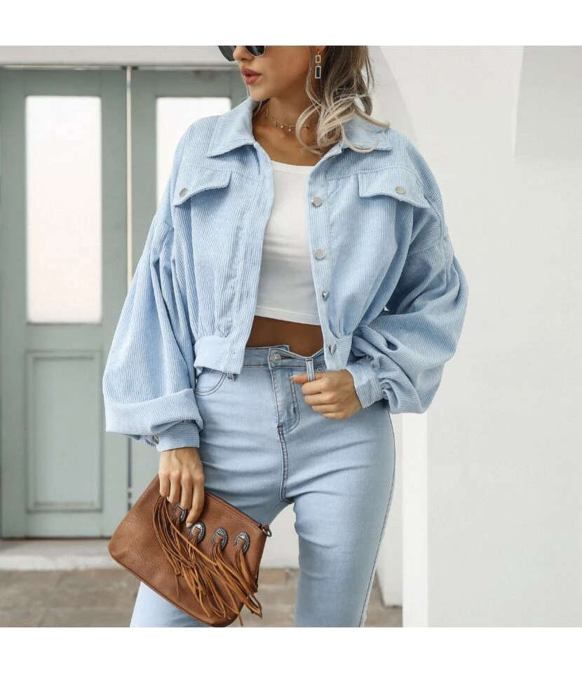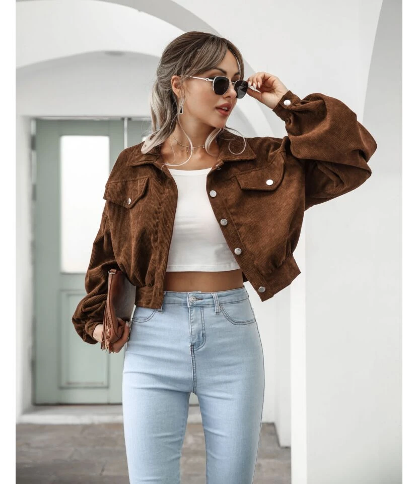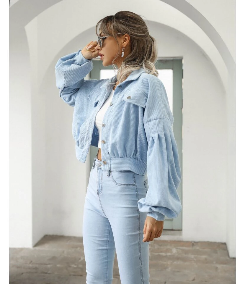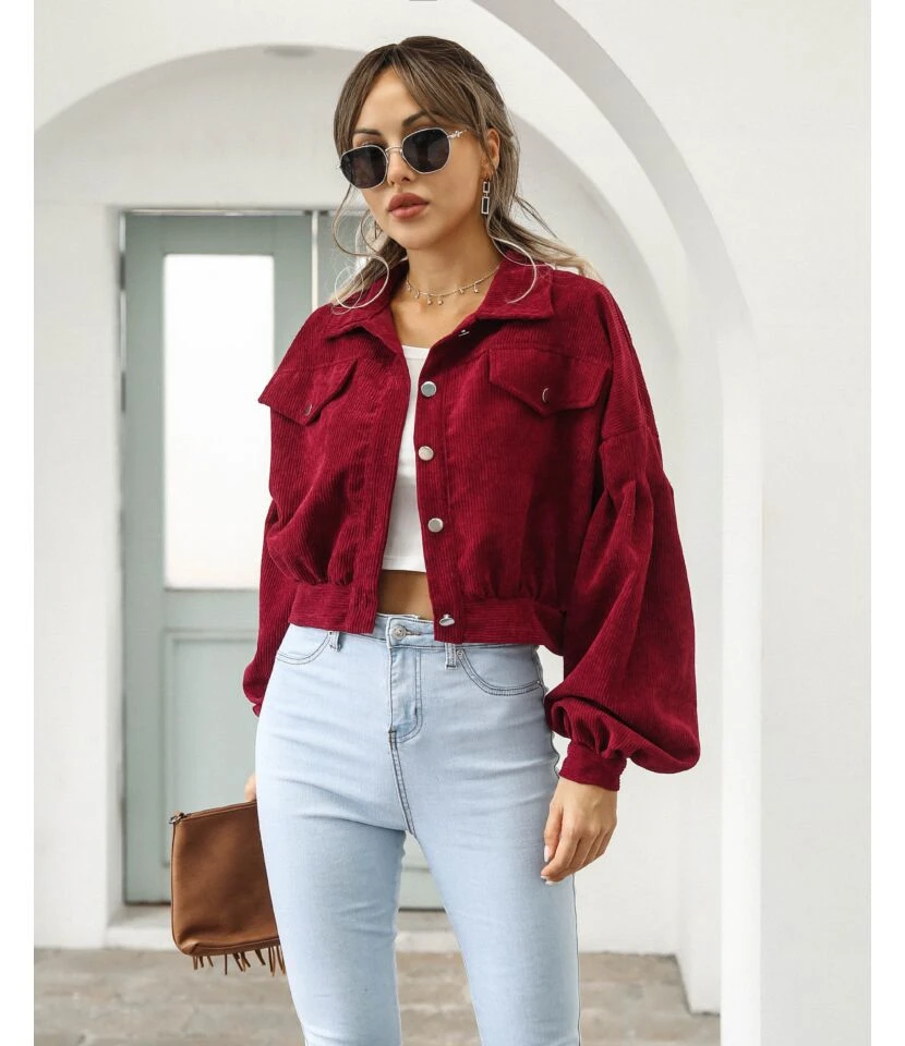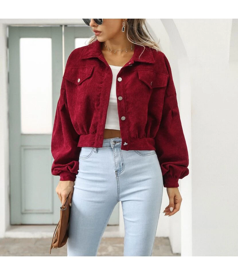 Casual Lapel Corduroy Short Jacket Lantern Sleeve Solid Color Single Breasted Women Wholesale Coats SOUN560380