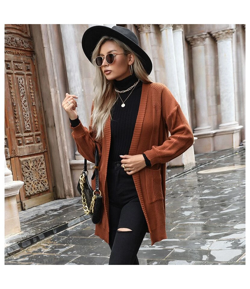 Casual Long Sleeve Solid Color Loose Knitted Sweater Wholesale Cardigan SOUN562660