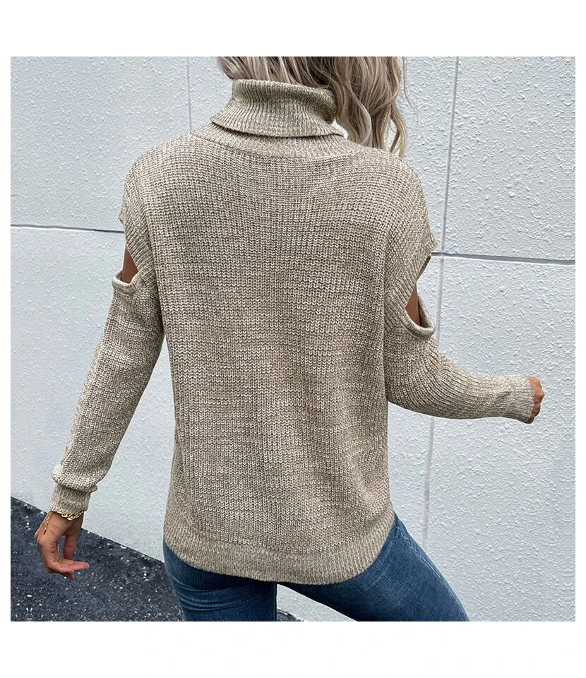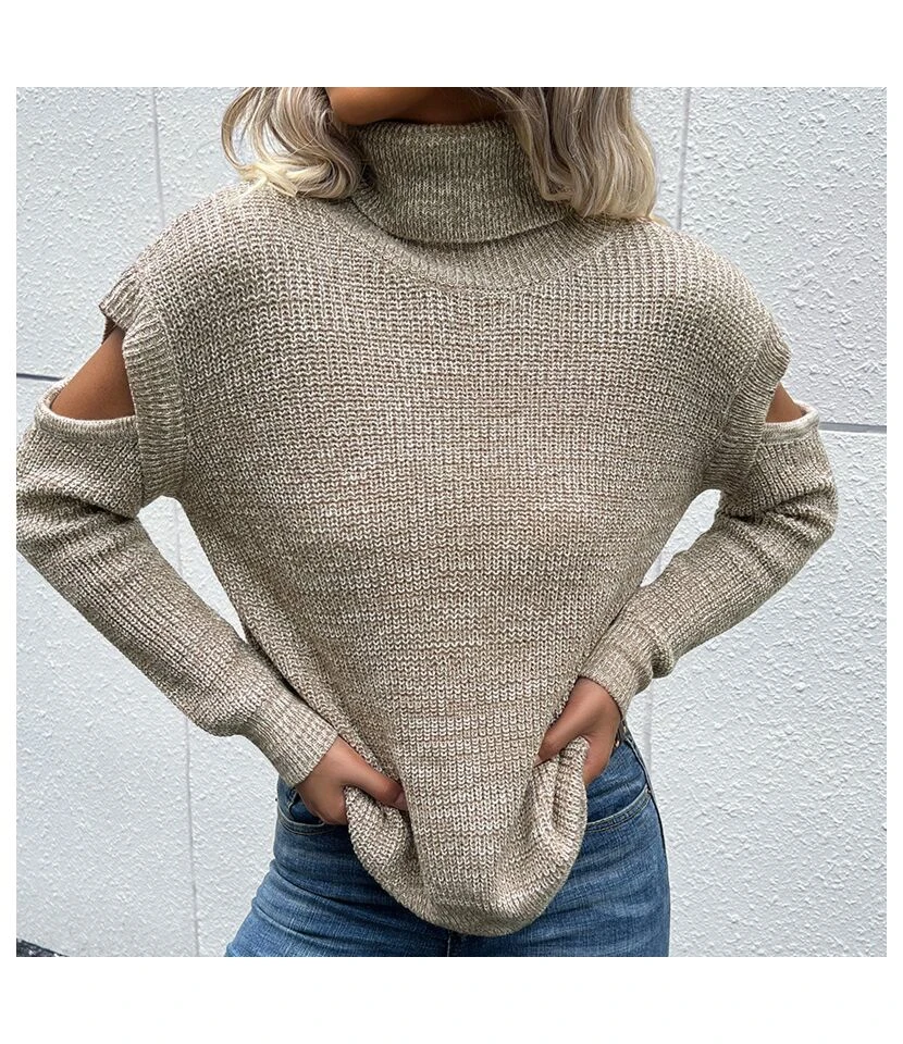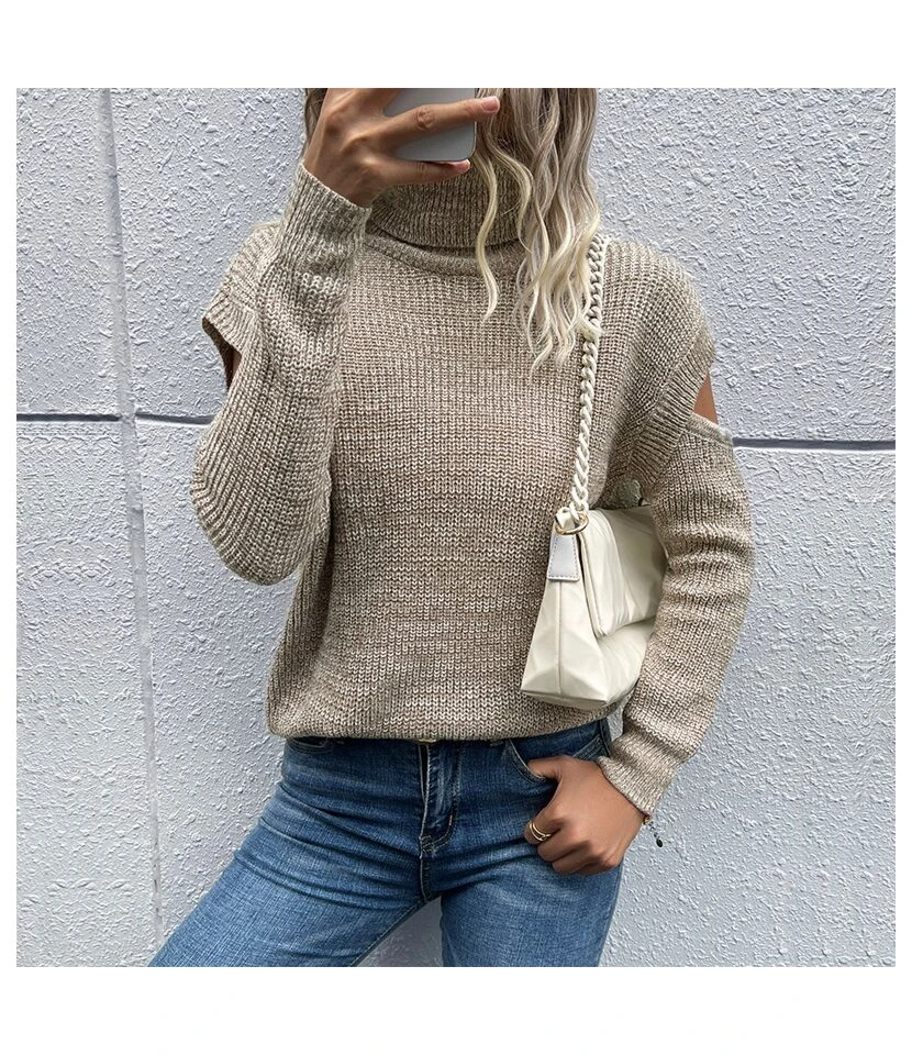 Casual Off Shoulder High Collar Long Sleeve Solid Color Wholesale Sweaters STN562287