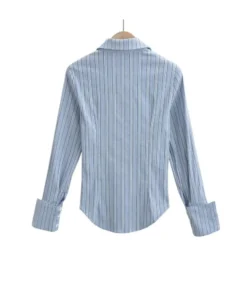 Irregular Jacquard Striped Slim Long-Sleeved Lapel Commuting Shirt Wholesale Women Tops STV464305