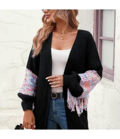Fashion Colour Block Fringed Long Knitted Cardigan Jacket Wholesale Womens Clothing N5923082600042