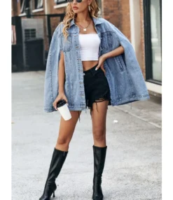 Fashion Design Loose Versatile Button Down Lapel Denim Jacket Wholesale Women Tops SOUV464486