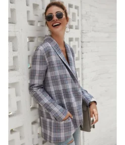 Plaid Print Womens Long Jacket Fashion Loose Casual Outerwears Wholesale Cardigans SOU95373
