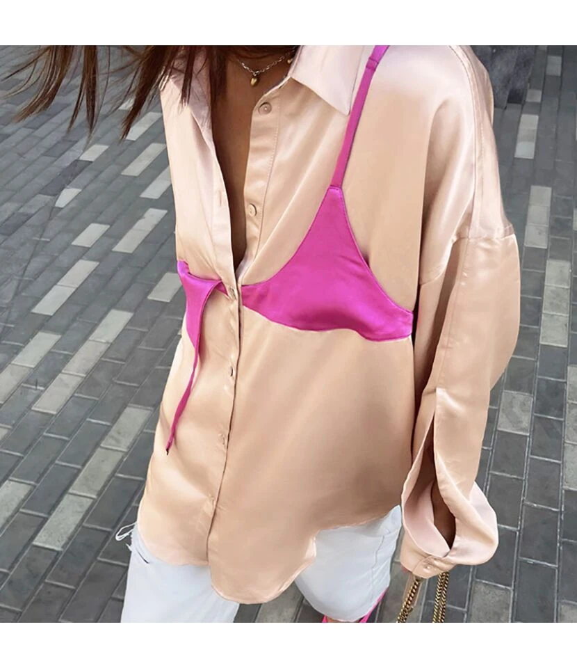 Solid Color Long Sleeve Lapel Chiffon Loose Casual Tops Womens Shirts Wholesale Blouse STN533177