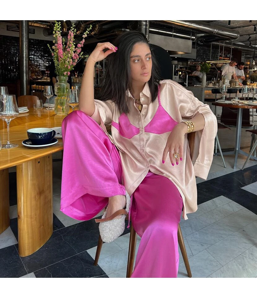 Summer Solid Color Short Sleeve Business Casual Womens Lapel Satin Shirts Wholesale Blouse STN533372