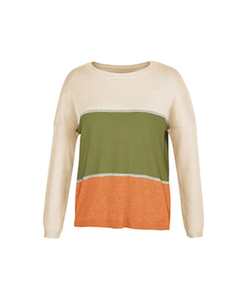 Fall Knitting Sweater Patchwork Colorblock O-neck 210824775