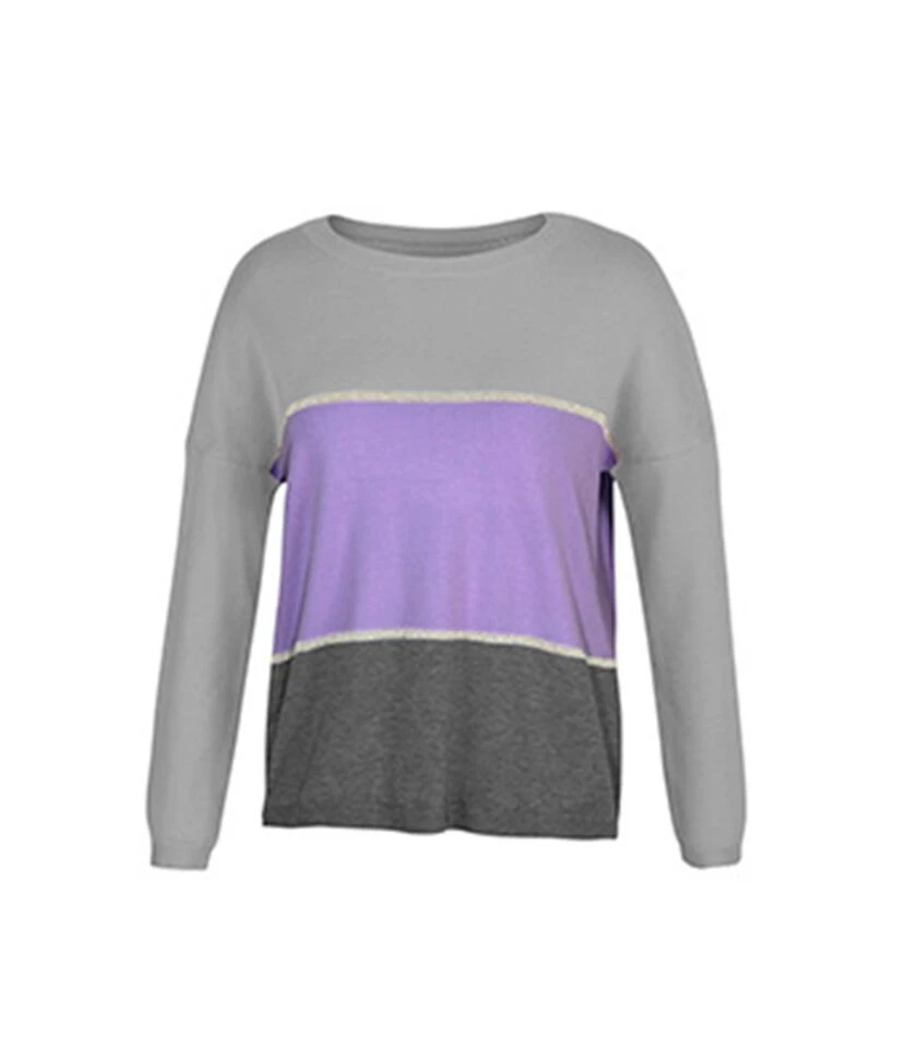 Fashion Colorblocked Striped Crew Neck Knit Shirt Wholesale Womens Tops N5923070300136