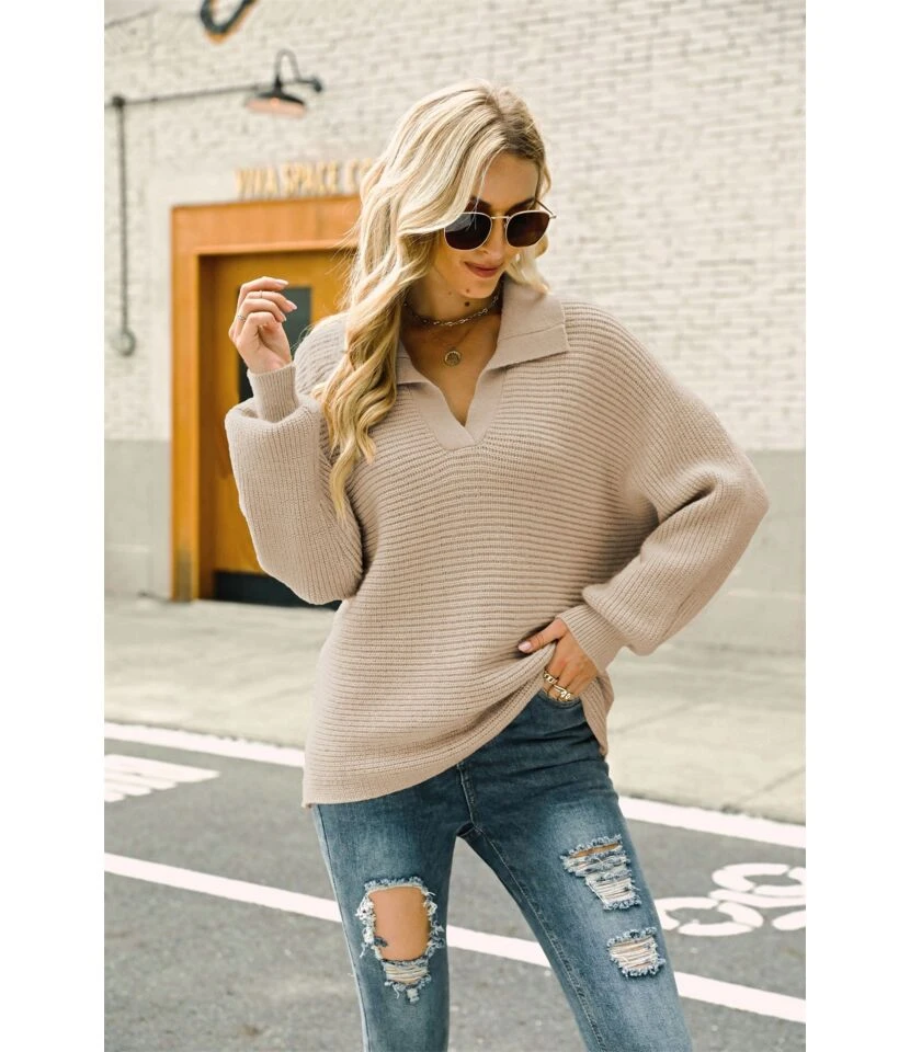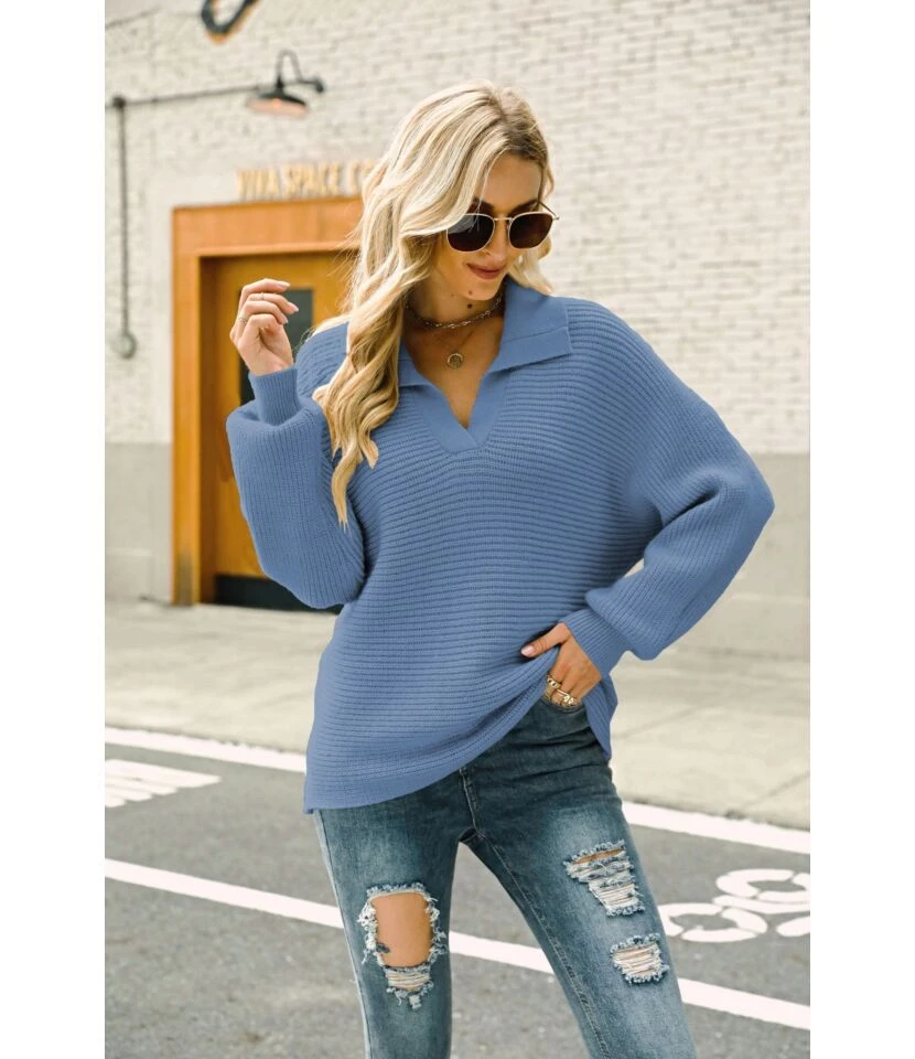 Fashion Long Sleeve Solid Color Pullover Lapel Knit Sweater Wholesale Womens Tops V5923053100014