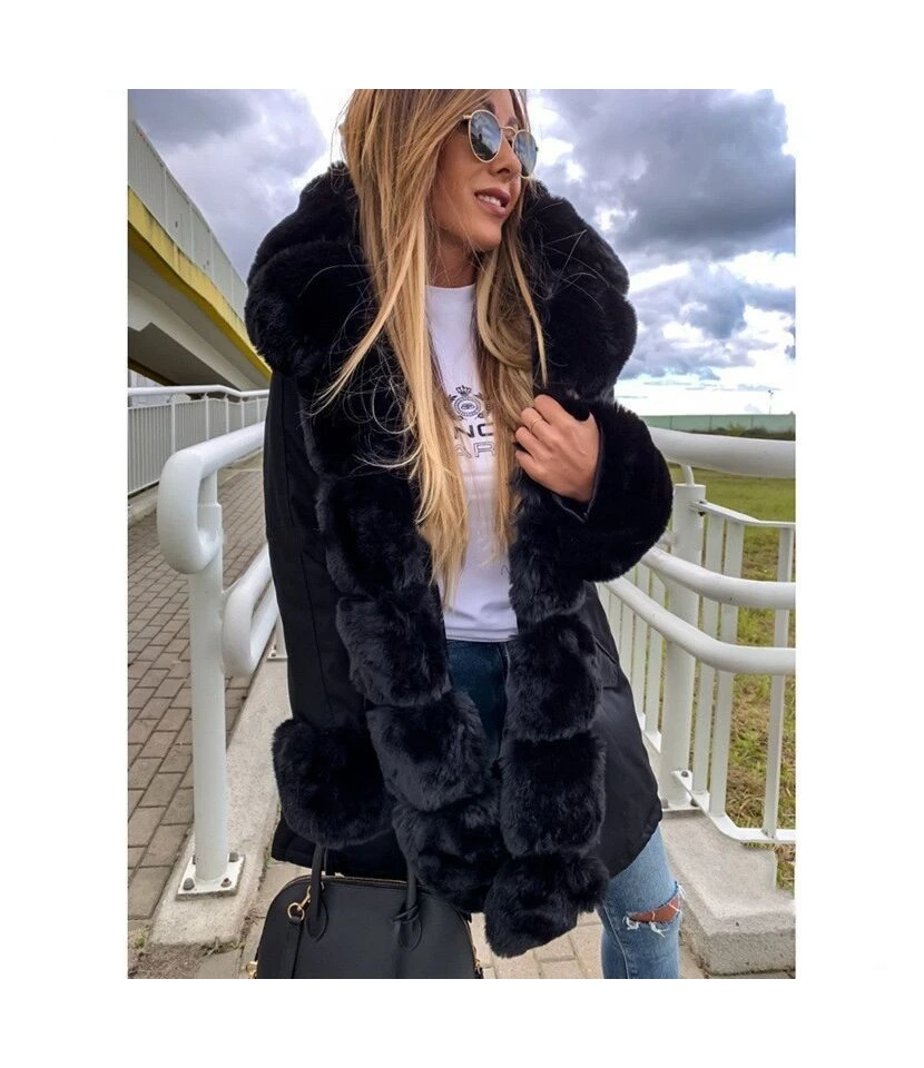 Fashion Thick Fur Collar Hood Coat Long Sleeve Zipper Solid Color Slim Wholesale Clothing For Women SOU95354