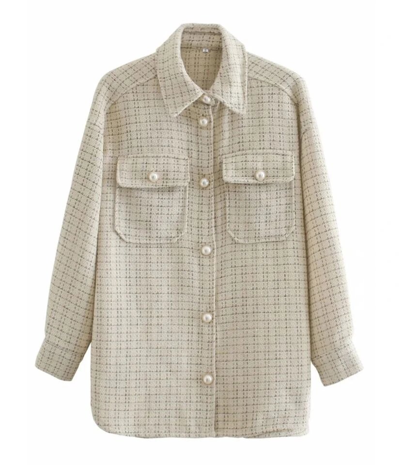 Be the first to review “Flap Pocket Pearl Button Plaid Shirt Coat” Cancel reply