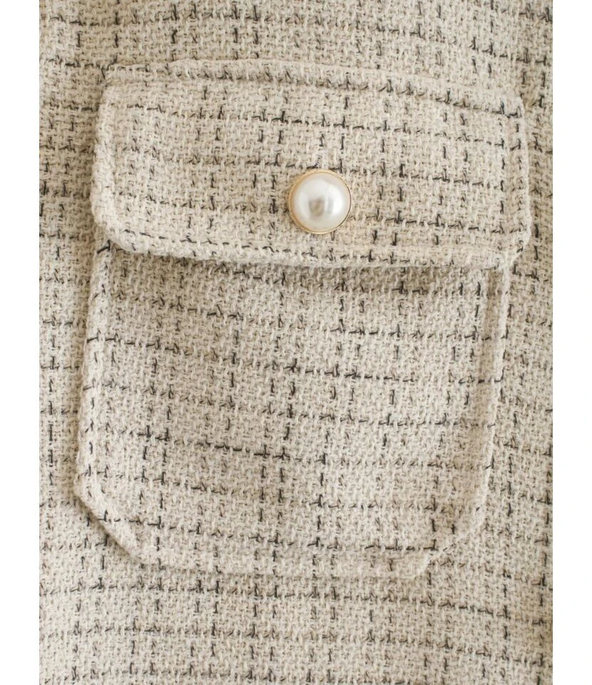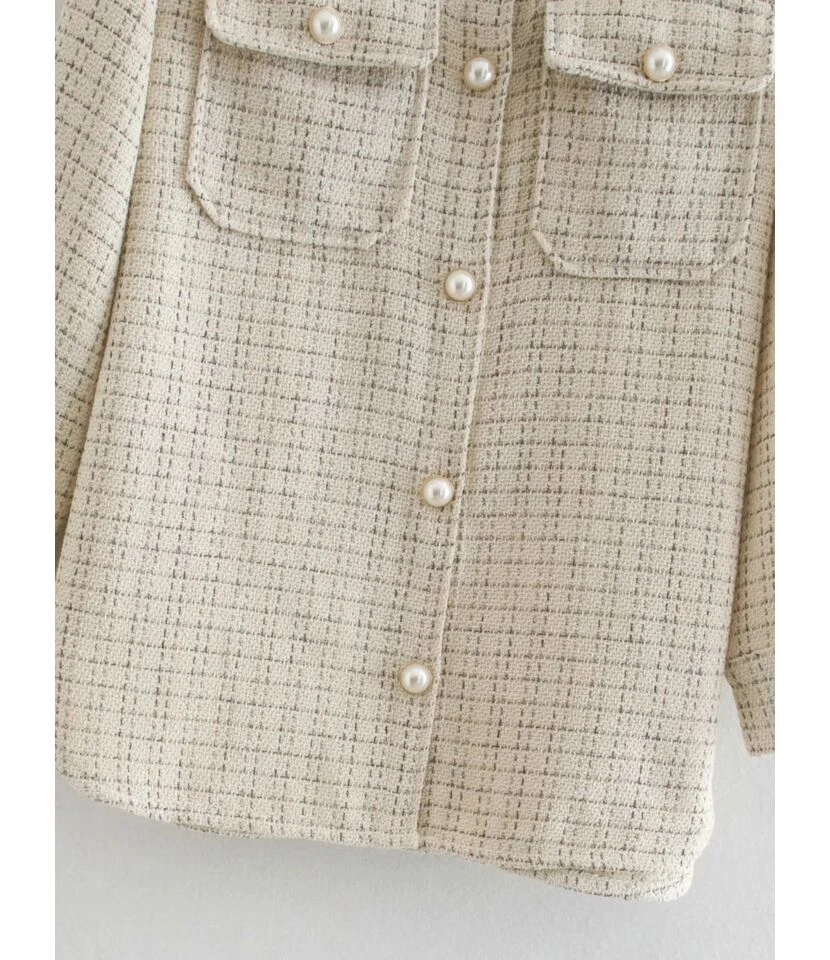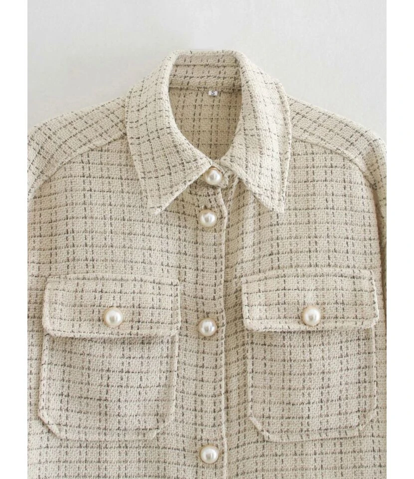 Flap Pocket Pearl Button Plaid Shirt Coat