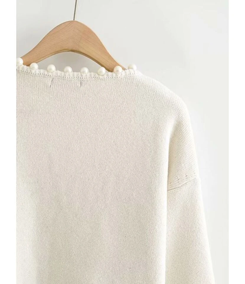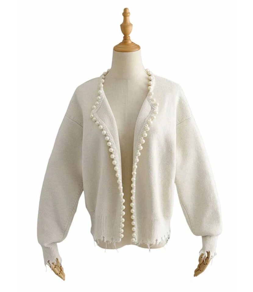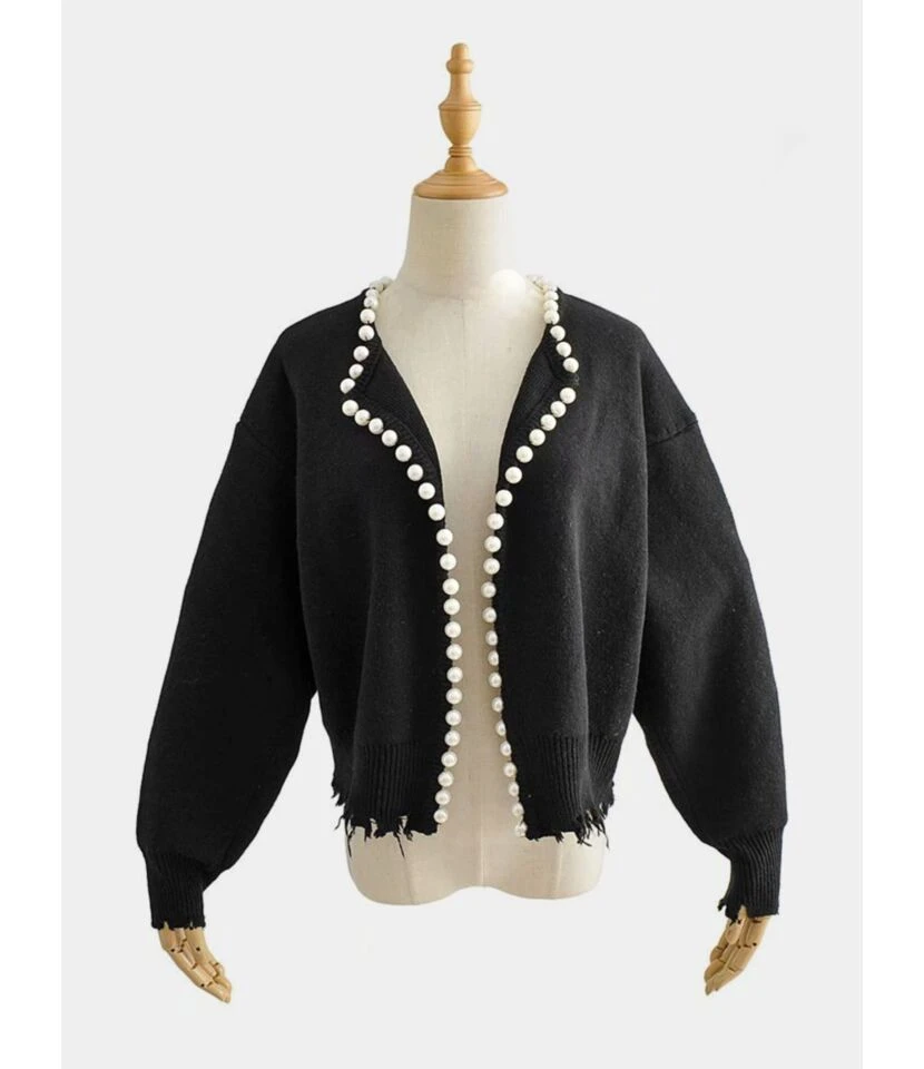 Be the first to review “Fringe Trim Pearls Beaded Knitted Cardigan” Cancel reply