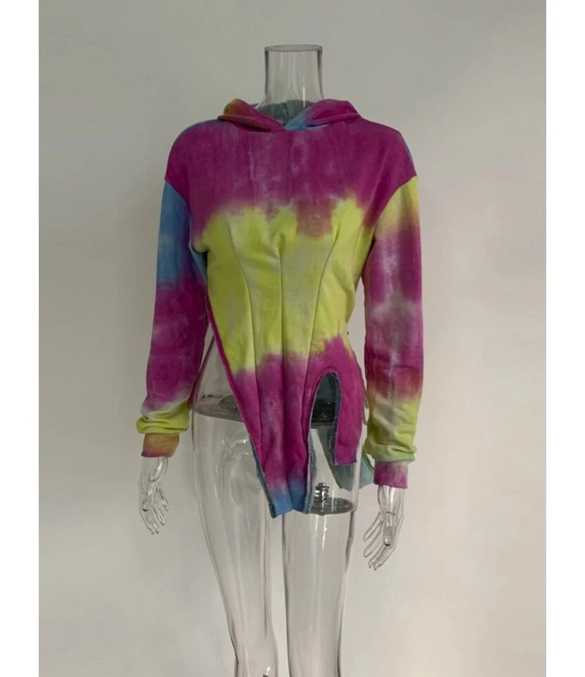 Hot Sale Tie Dye Hoodie T-shirt Irregular Hem 210728425