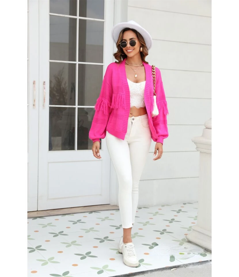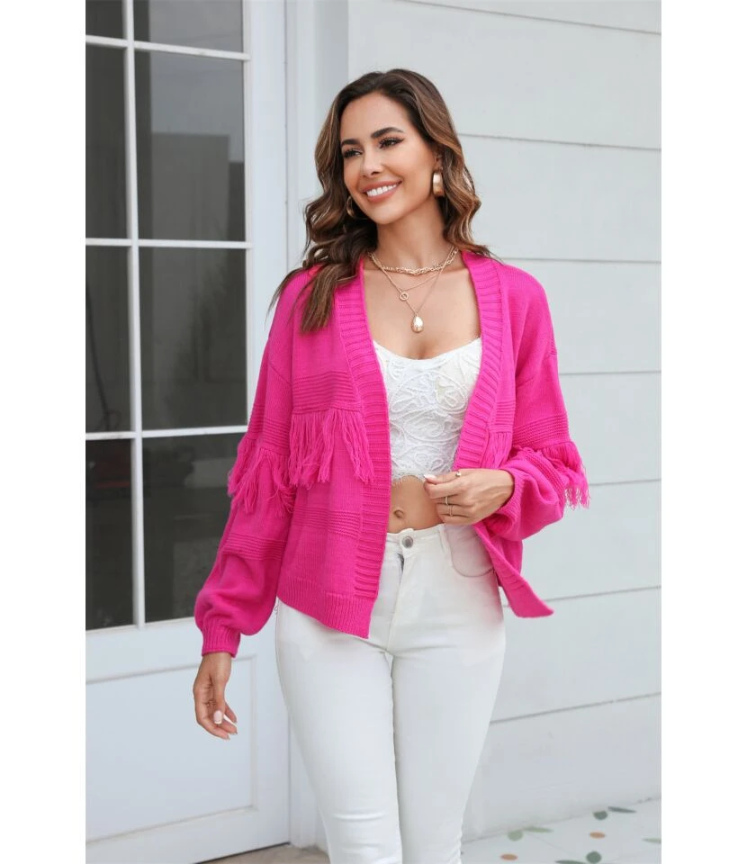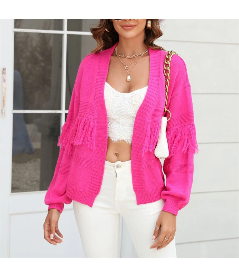Knitted Solid Color Long Sleeve Fringed Sweater Cardigan Wholesale Women’S Top N4623070300139