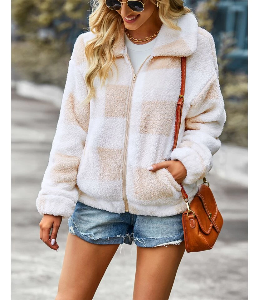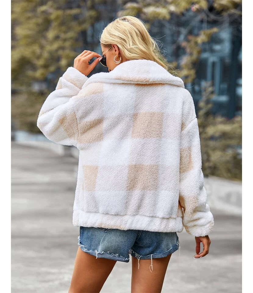 Lapel Plaid Printed Women’S Mid-Length Long-Sleeved Wholesale Coats Casual SOU202670