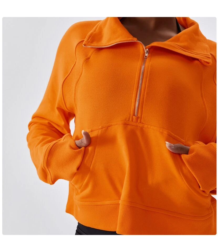 Long-Sleeved Pullover Half Zipper Turtleneck Sports Loose Sweatshirt Wholesale Women Top STV464022