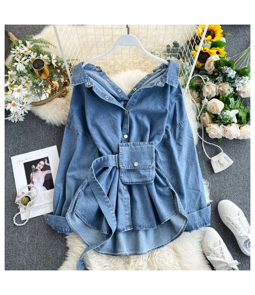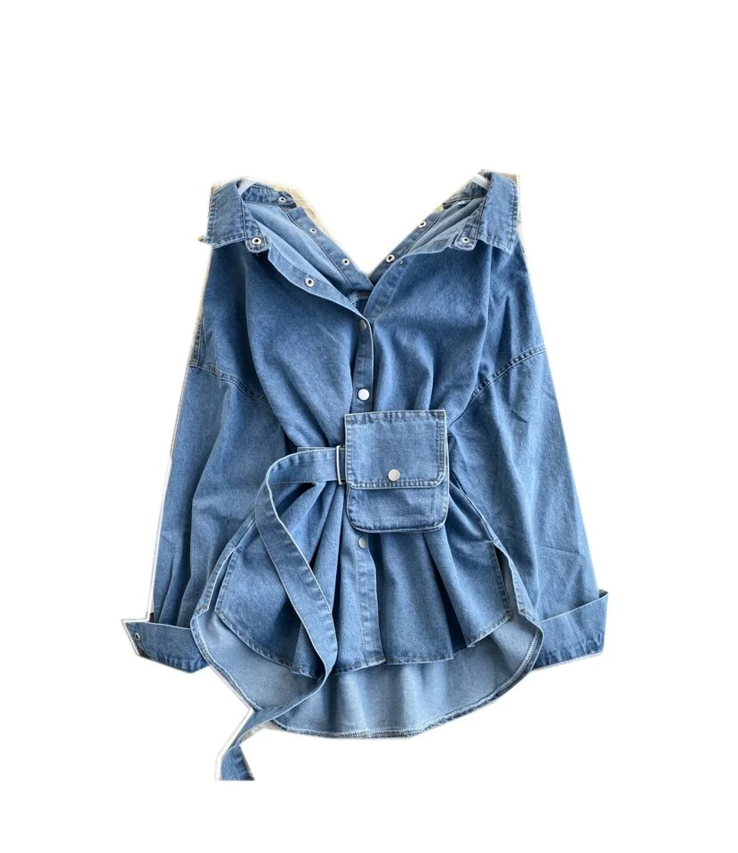 Long-Sleeved Tie Open Back Multi-Wear Bag Denim Shirt Wholesale Women’S Tops N4623042400004