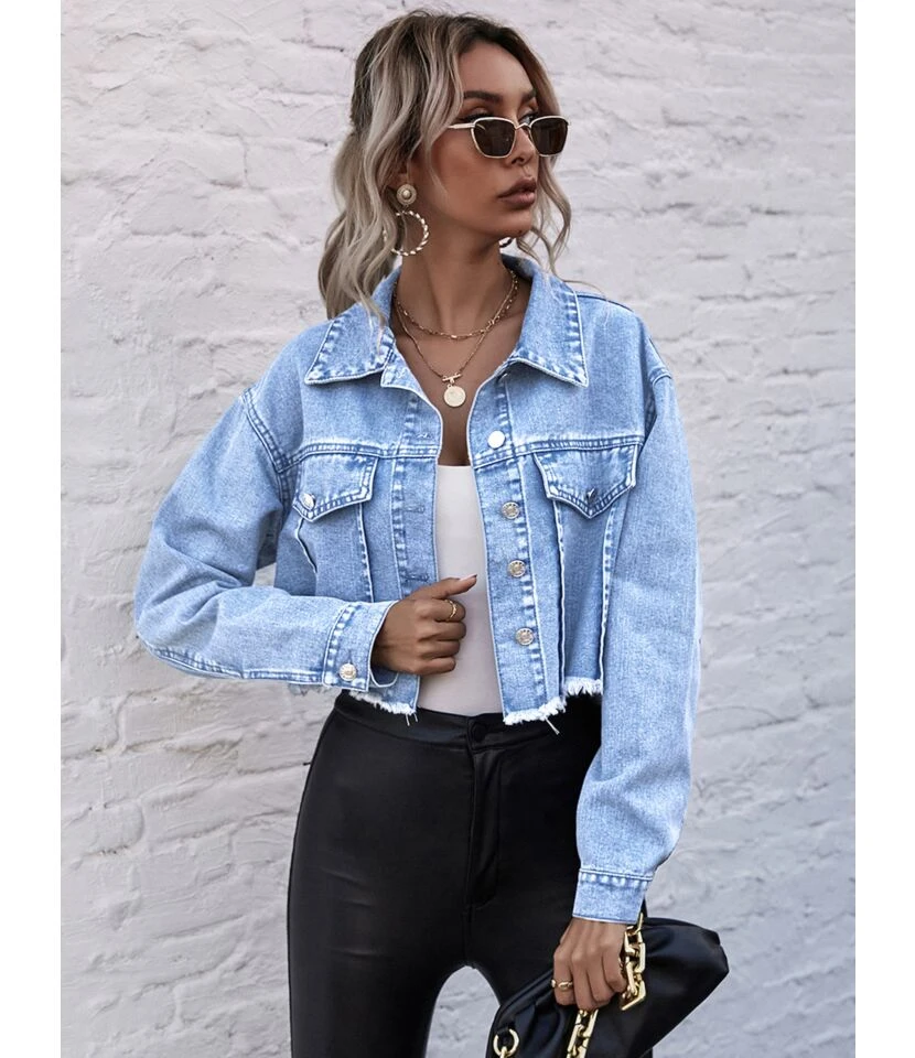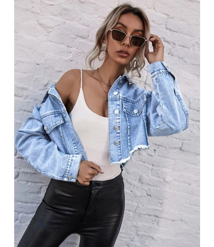 Fashion Design Loose Versatile Button Down Lapel Denim Jacket Wholesale Women Tops SOUV464486