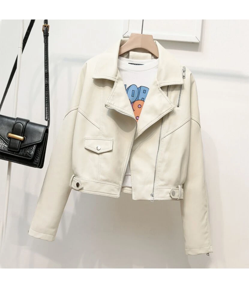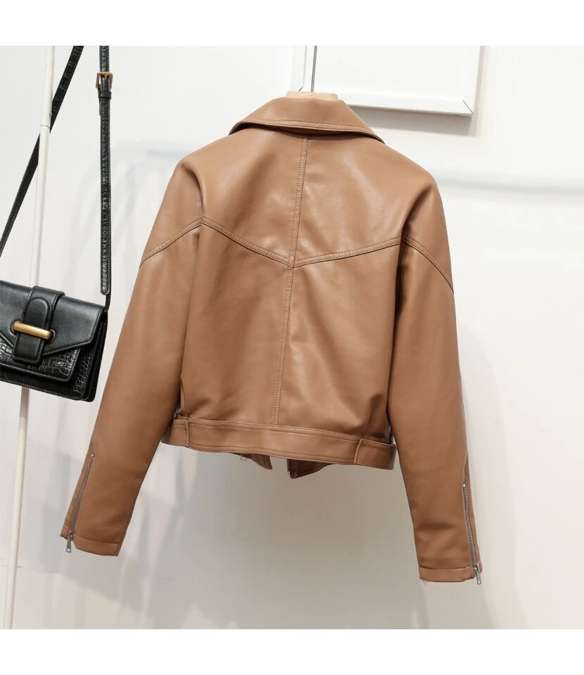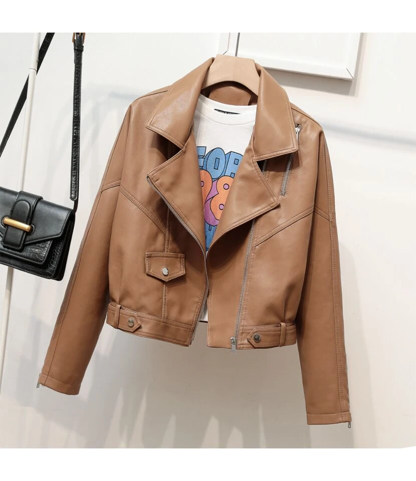 Motorcycle PU Leather Lapel Loose Short Wholesale Coats And Jackets SOU202643
