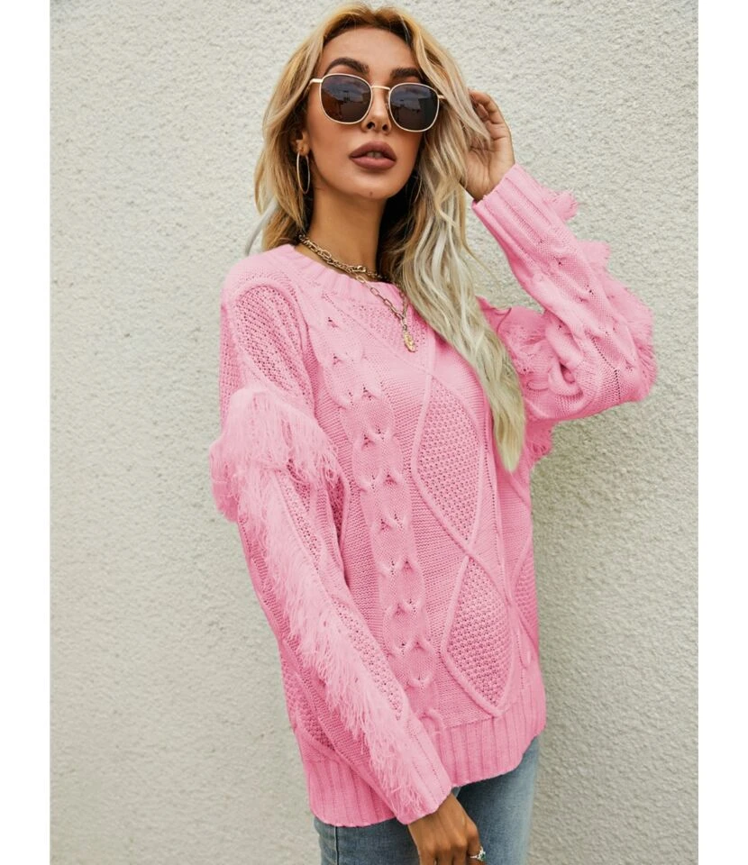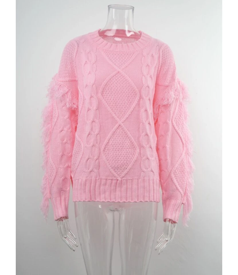 Be the first to review “O-neck Fringe Trim Long Sleeve Solid Color Knitted Sweater 210710516” Cancel reply