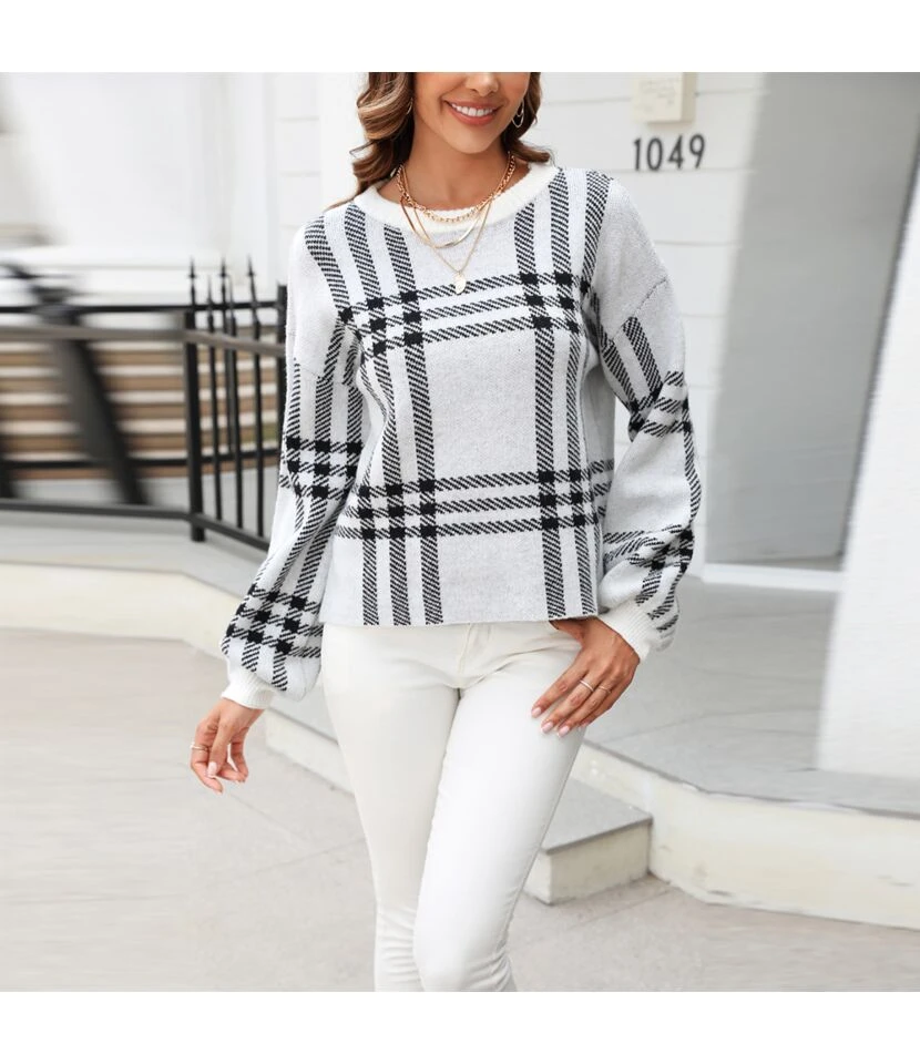 Casual Long Sleeve Colorblocked Plaid Pullover Knit Sweater Wholesale Womens Tops V5923070300170
