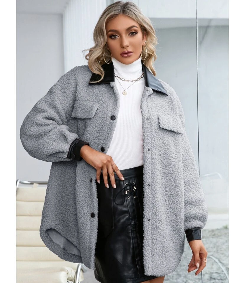 Plush Coat PU Leather Lapel Collar Pocket 210812879