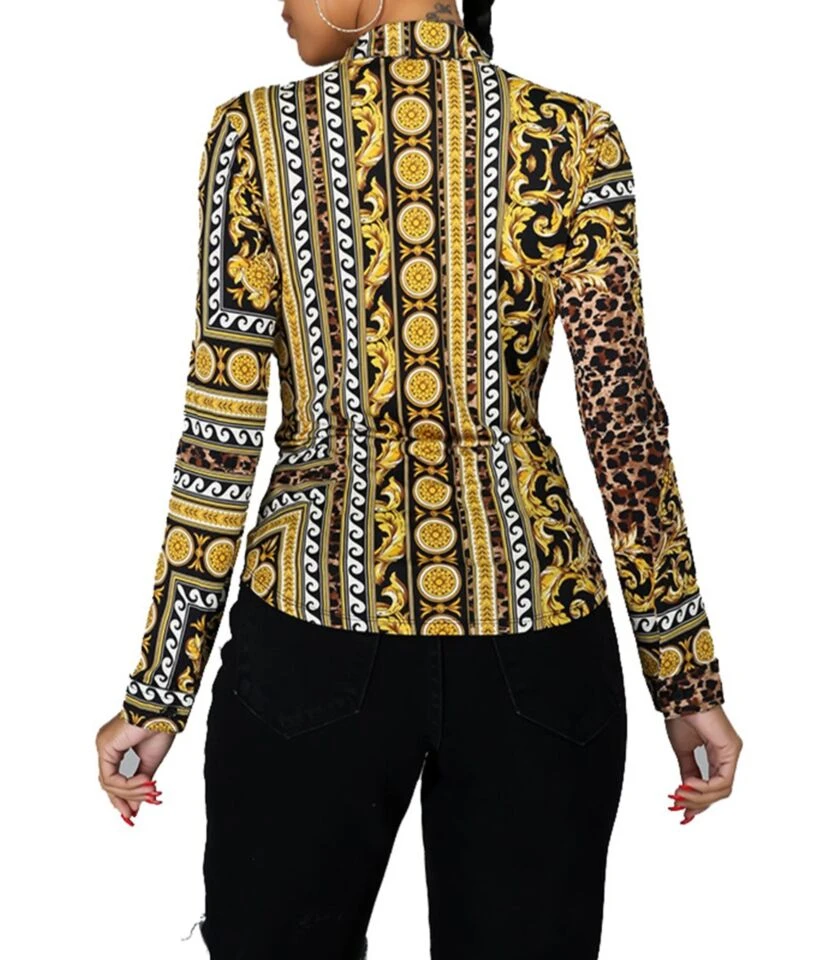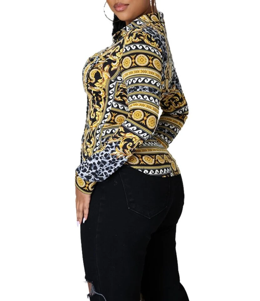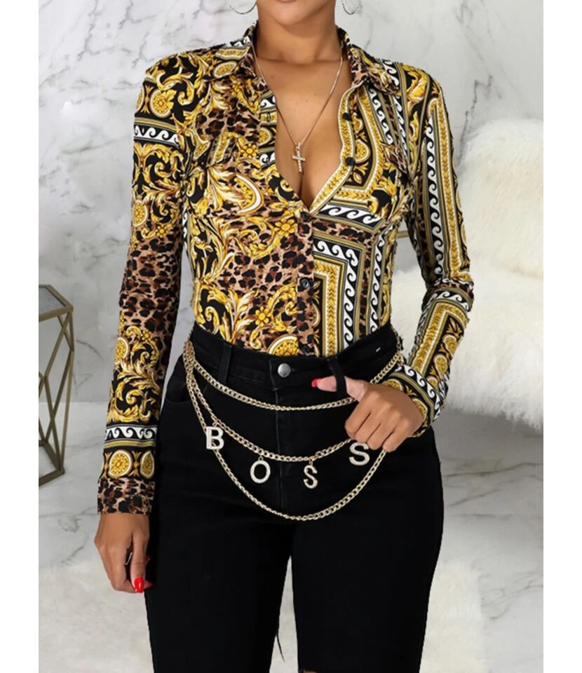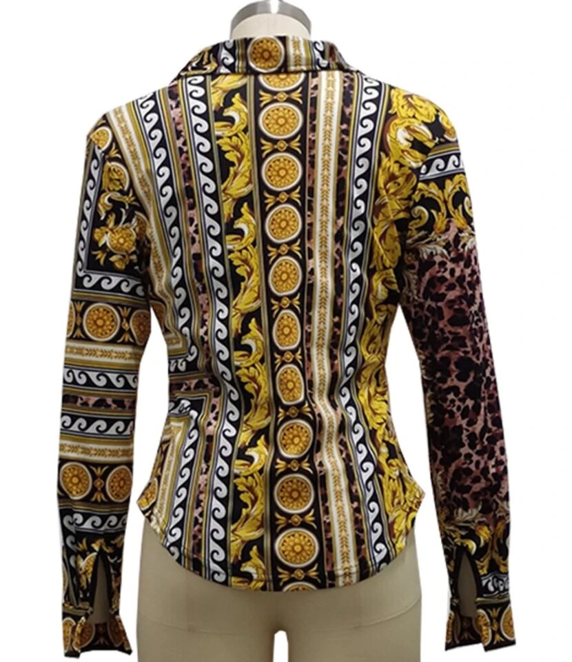Two stunning shades are available in this dress. These colors are brown and gold. You will love these colors. The material used by the for making this dress is polyester. The most attractive thing about the dress is its pattern. The pattern of the shirt is printed, and this print is all over the shirt. Another appealing element about the dress is its slim fall button style. The buttons are attached to the shirt. You can use these buttons according to your own choice. The elasticity of the dress is inelastic. You will enjoy this dress at a different place. You can use this shirt on your friend’s birthday and go to hang out with your friends. This is the multicultural dress. You can use it anyplace. The fashion tip for this single fall button shirt is pants, jeans, and a necklace. You can also use the chains on the jeans.