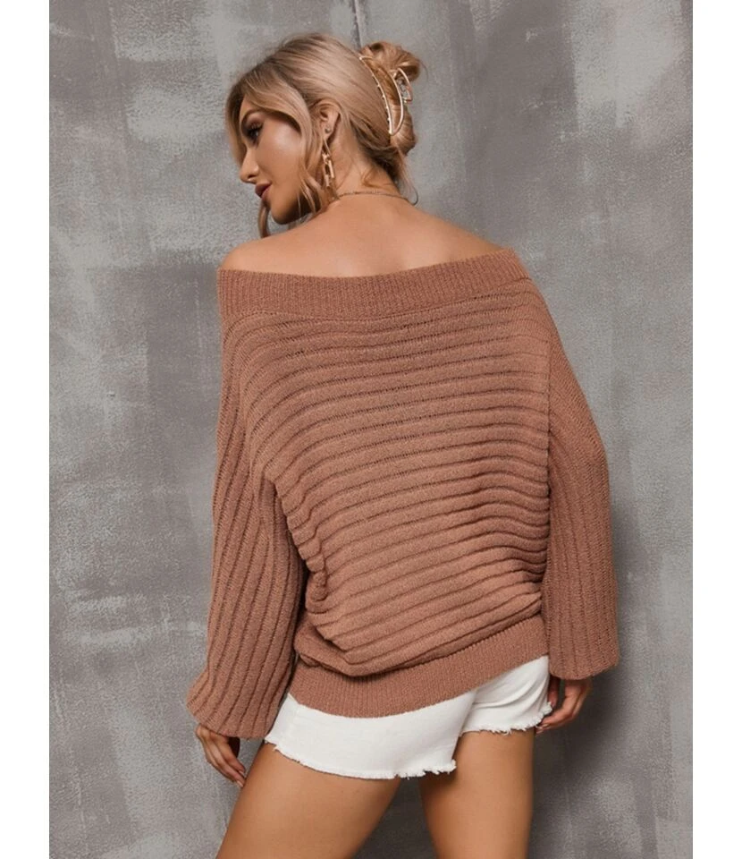 Pullover Fall Loose Ribbed Knitted Sweater 210804552