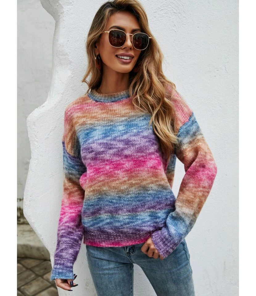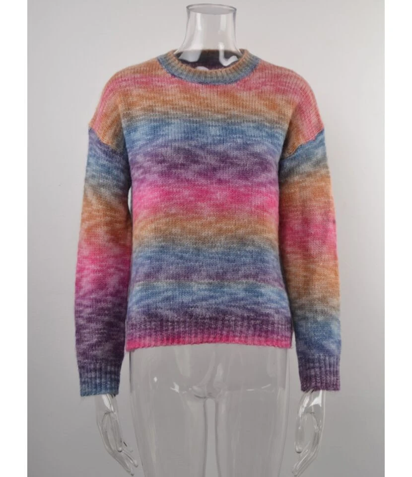 Rainbow Color-block Printted Pullovers Informal Sweater 210721469