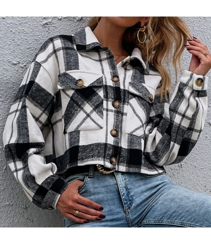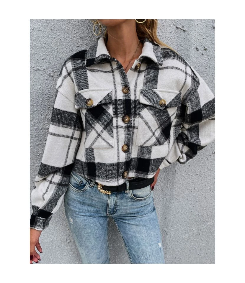 Retro Lapel Plaid Single-Breasted Long Sleeve Short Jacket Wholesale Coats SOUN562732