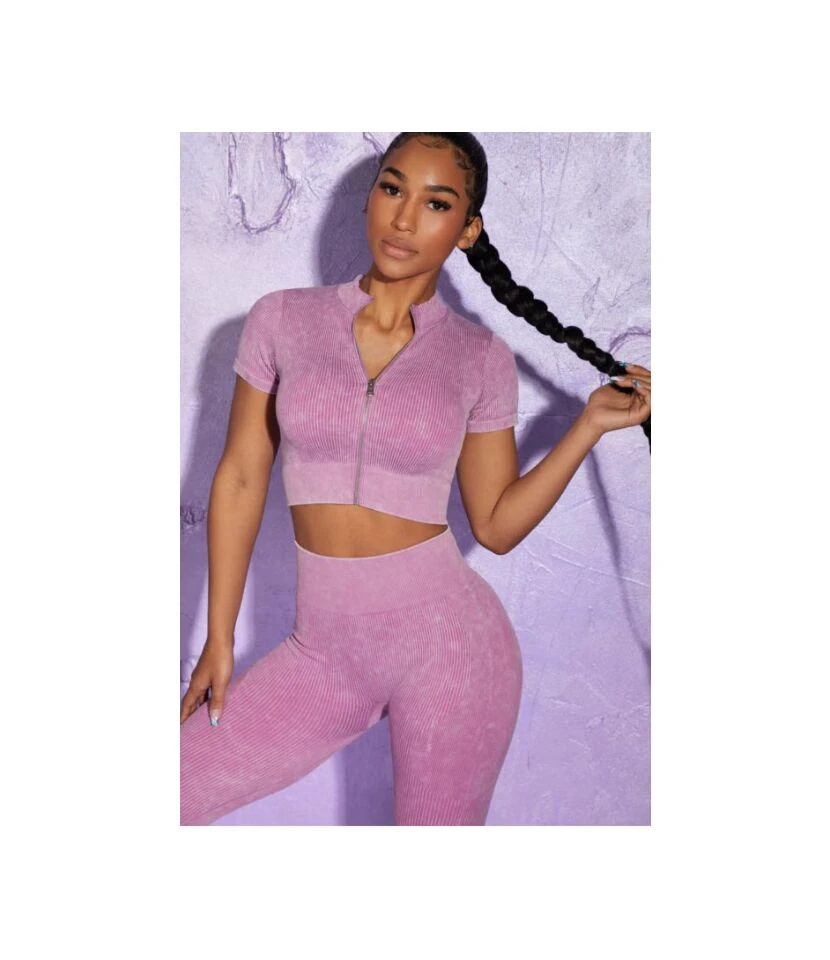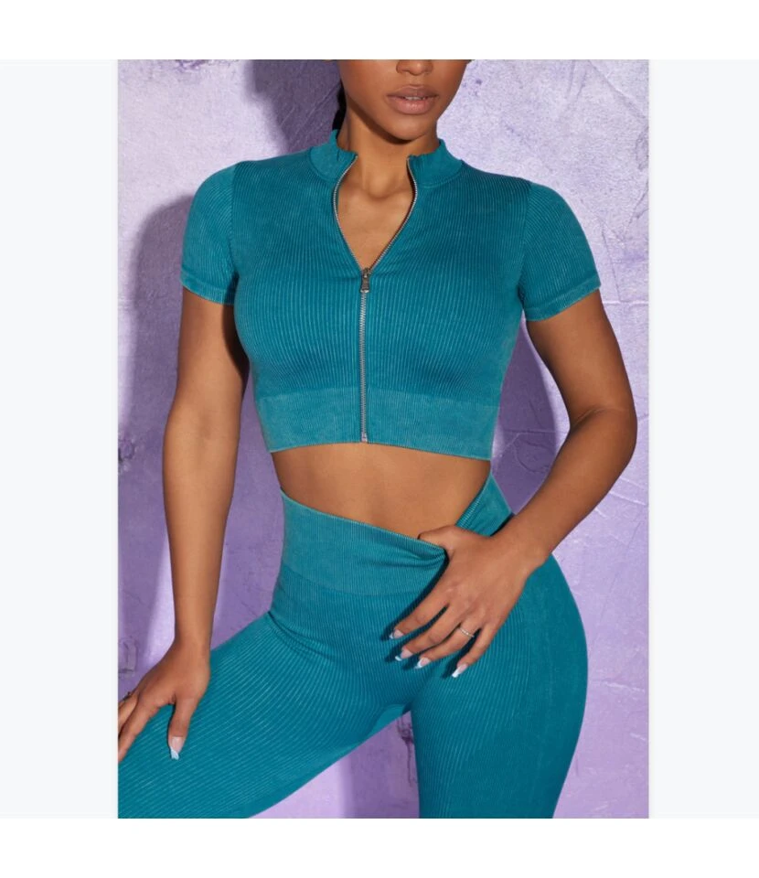 Zipper Short Tops & Leggings 2pcs Sport Seamless Yoga Suits Wholesale Activewear Sets SON536993