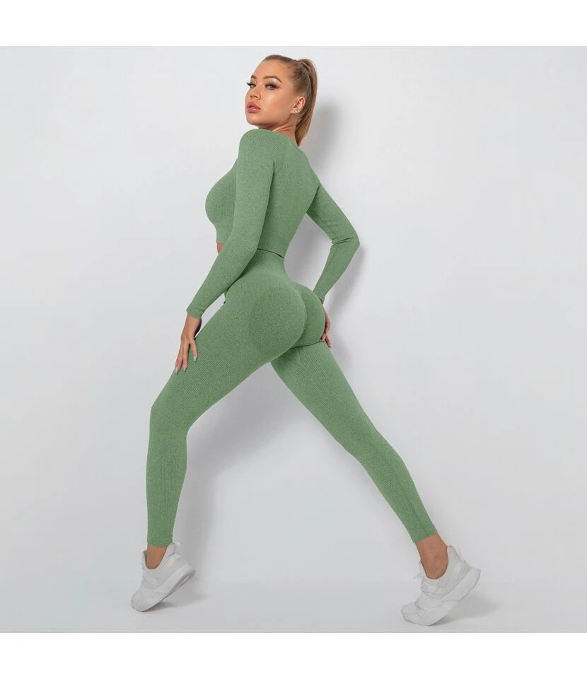 Sand Wash Athletic Shirts & Leggings Seamless Yoga 2pcs Sets Wholesale Workout Clothes SON534217