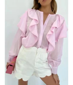Casual Loose Button Lapel Long Sleeve Top Wholesale Women’S Top