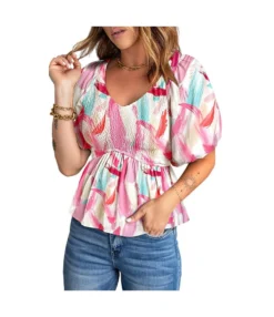 Colorblock Print Long Sleeve Loose Lapel Womens Long Shirt Fashion Wholesale Blouse STN533421