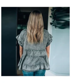 Denim Short Sleeve Pullover Round Neck Ruffle T-Shirt Wholesale Women’S Top N4623051900045