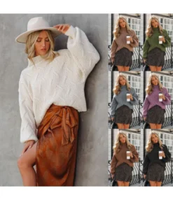 Fashion Splicing Pile Collar Plaid Knit Pullover Long Sleeve Loose Sweater Wholesale SSW94964