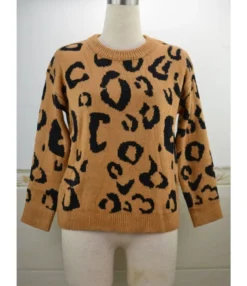 Leopard Print Patchwork Fashion Crew Neck Sweater Wholesale Womens Tops N5923070300149