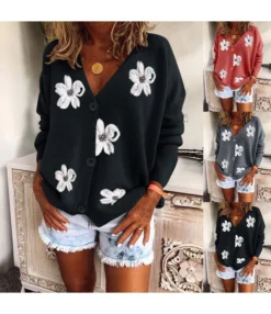 Sexy V-Neck Buttoned Floral Embroidered Knit Cardigan Wholesale Womens Clothing N5923081800043
