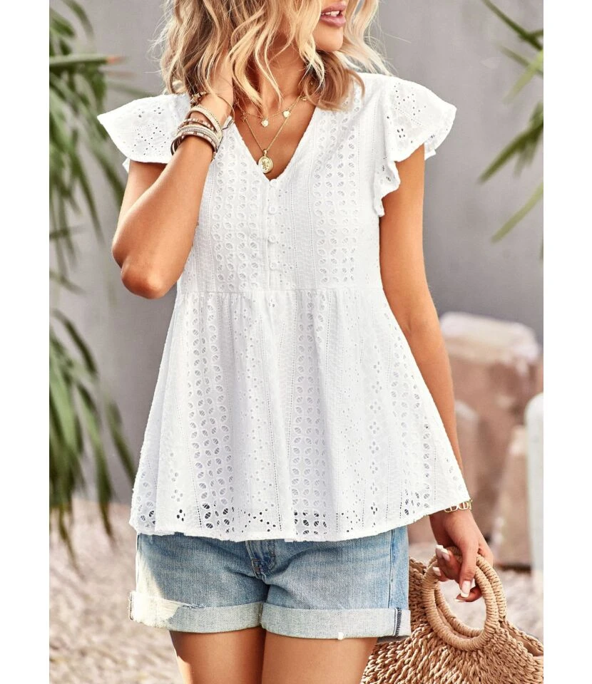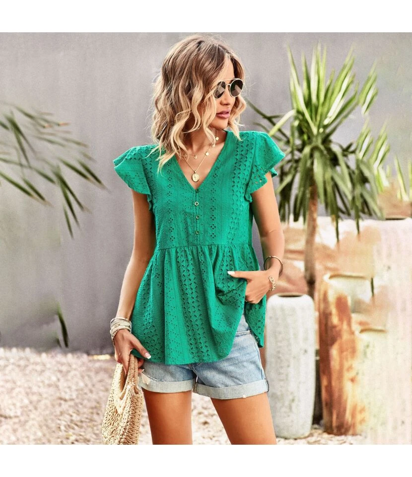 Slim Fit Solid Color Hollow Air Commuter V-Neck Top Wholesale Women’S Tops N4623041200015