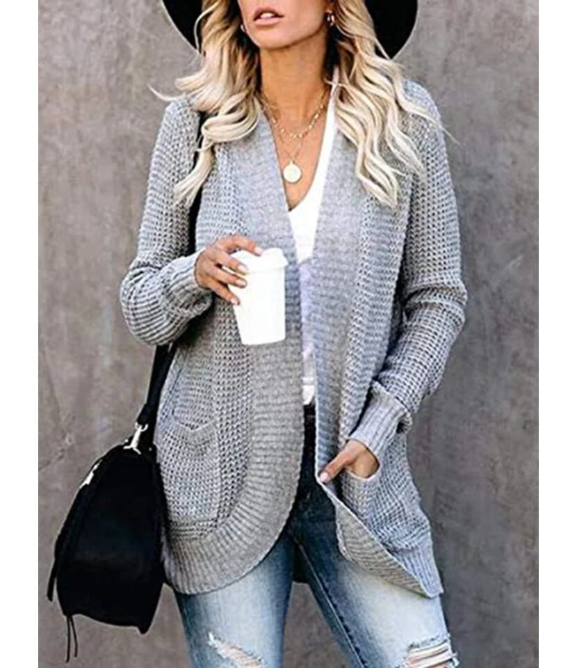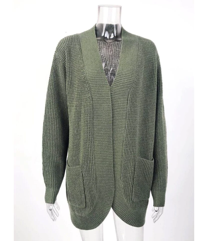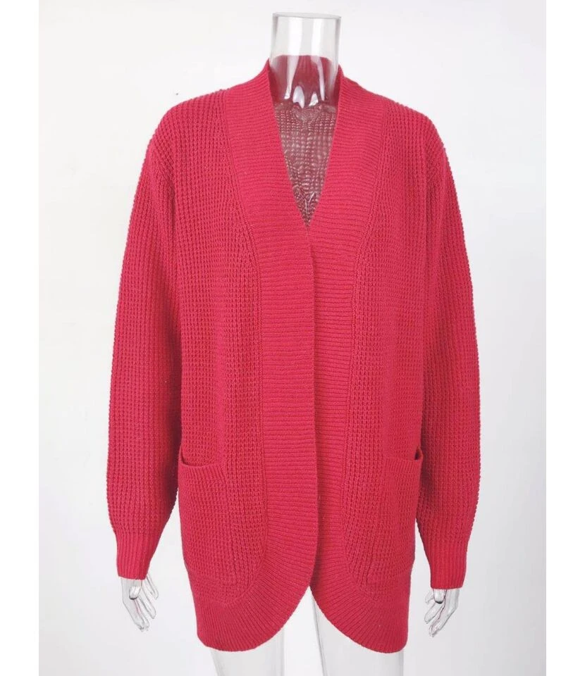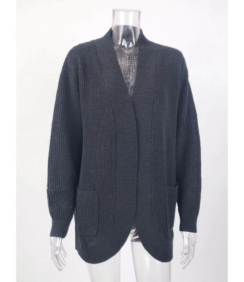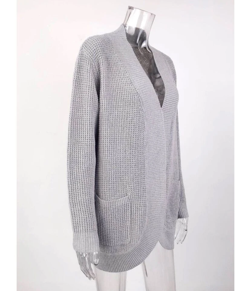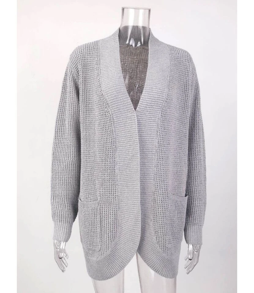 Solid Casual Loose Pocket Long Cardigan Sweater 210729293