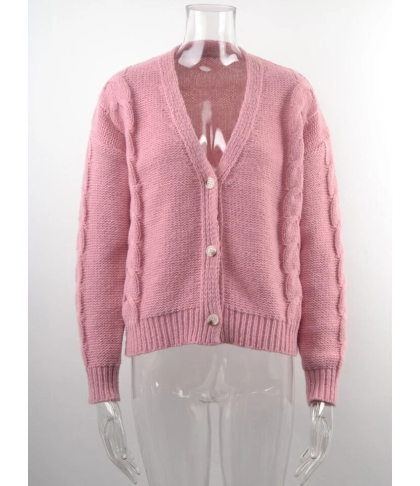 Fashion Colorblock Women’S Knitted Pink Single Breasted Knit Coat Wholesale Cardigan SOUN535332