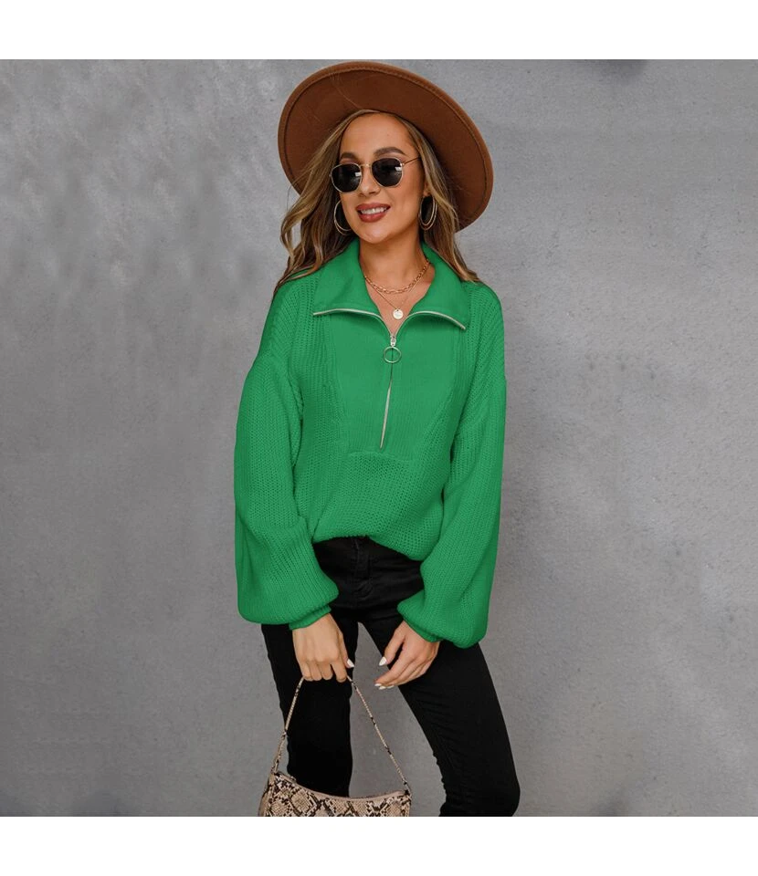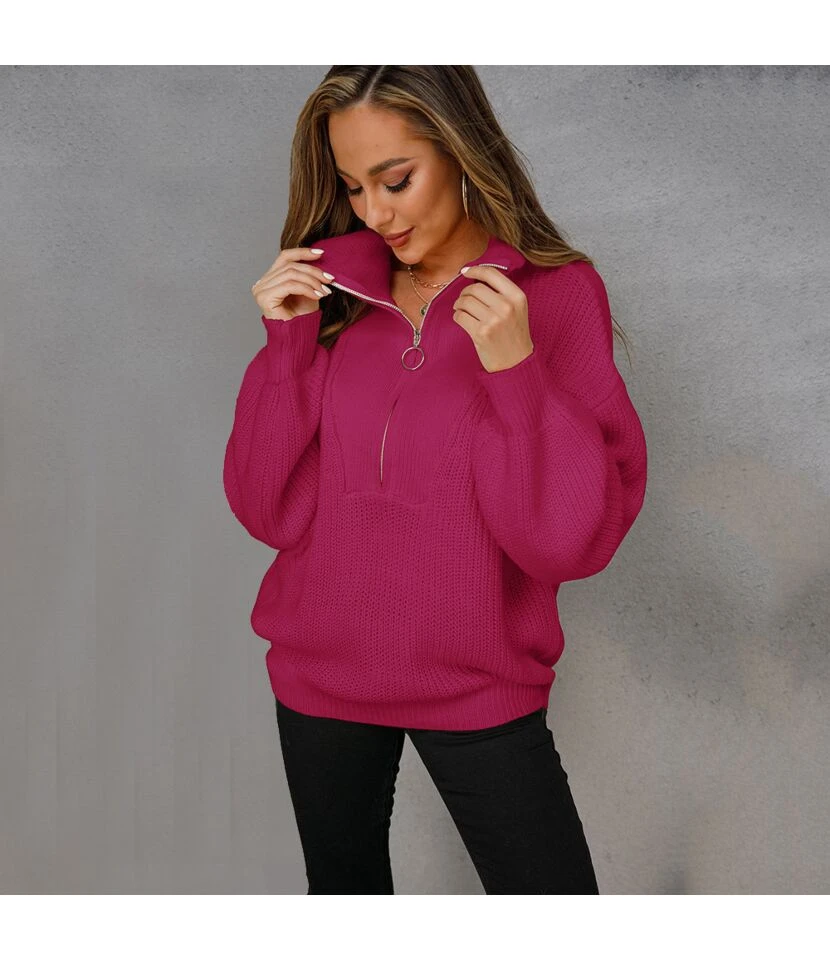 Loose Casual Solid Color Round Neck Knit Pullover Sweater Wholesale Women’S Top N4623070300169