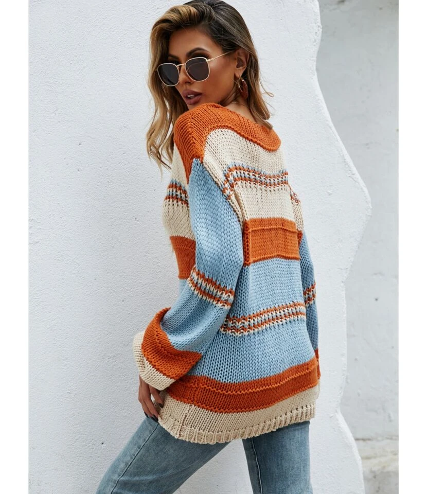 Be the first to review “Stripes Color Blocking Knitting Loose Long Sleeve V-neck Sweater 210721428” Cancel reply