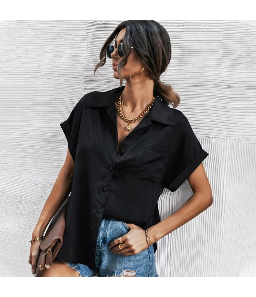 Be the first to review “Summer Solid Color Short Sleeve Business Casual Womens Lapel Satin Shirts Wholesale Blouse STN533372” Cancel reply