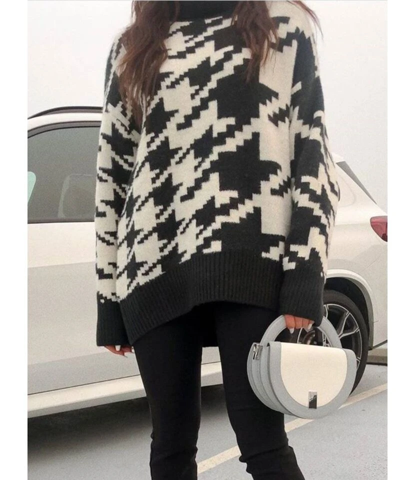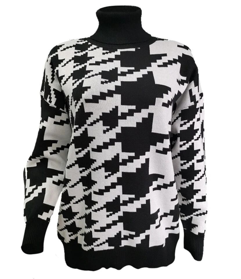 Be the first to review “Turtleneck Houndstooth Knit Smock Sweater” Cancel reply