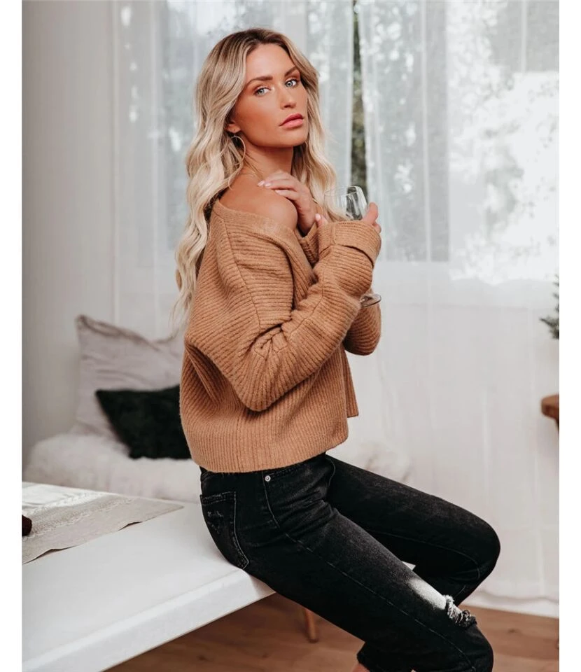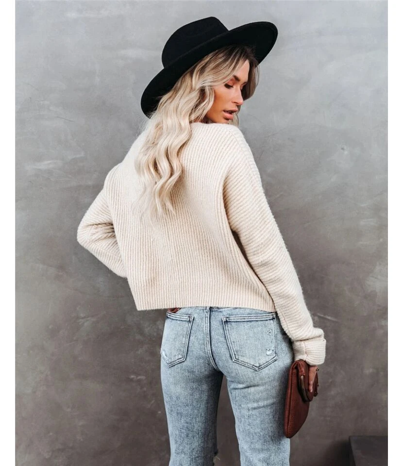 V-Neck Solid Color Plus Size Sweater For Women Wholesale SS180391
