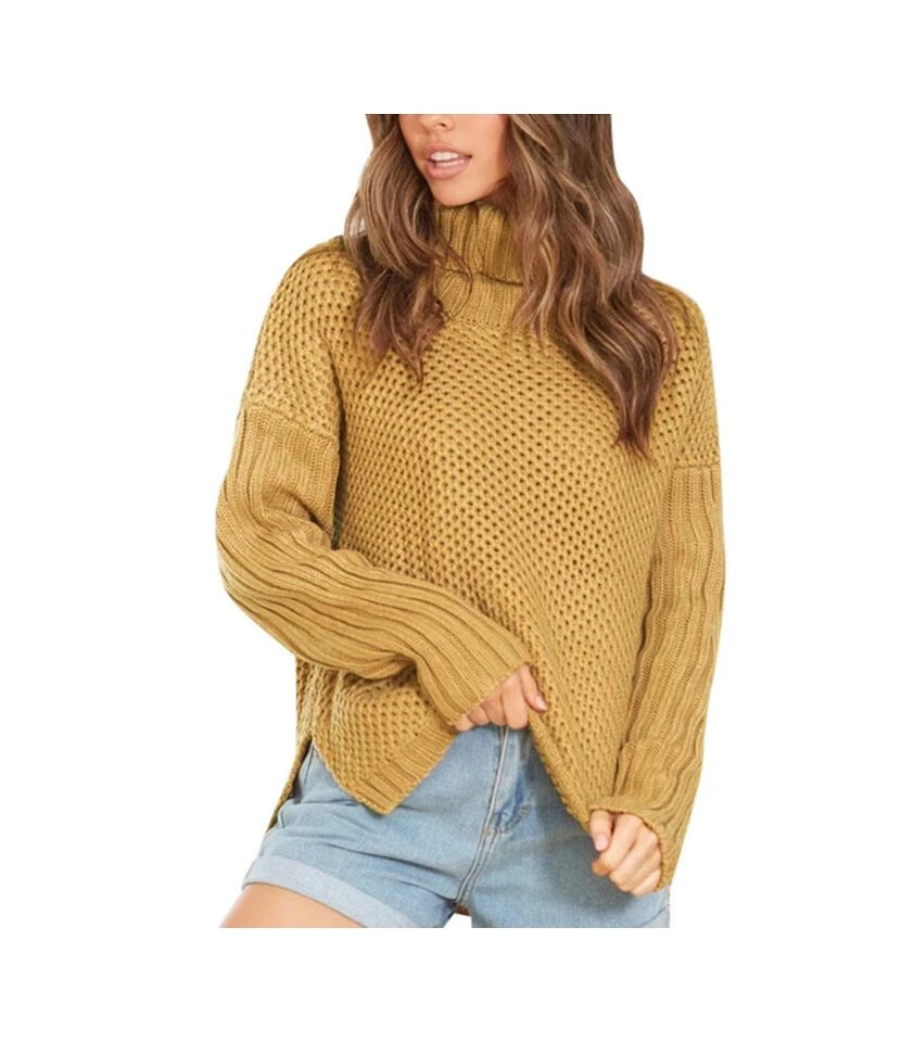 Warm Loose Turtleneck Knit Tops Long Sleeve Women Wholesale Sweater SSWN560055