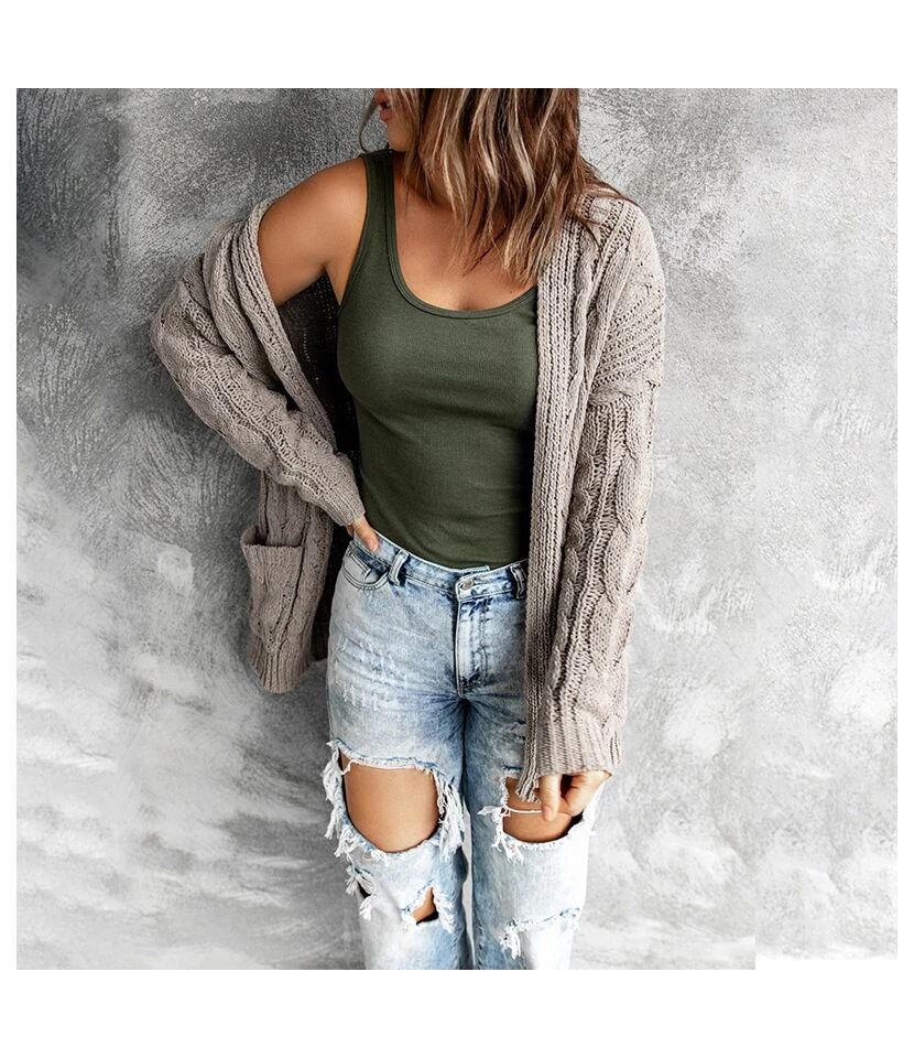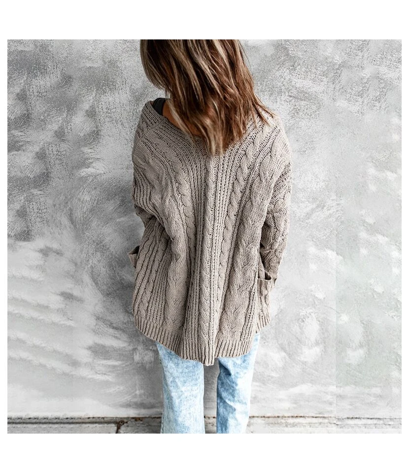 Wholesale Clothing Distributors Double Pockets Solid Color Knit Cardigan SW030681